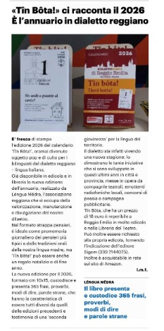 La Gazzetta di Reggio pubblica un articolo in cui viene presentato il calendario Strappapensieri Tîn Bôta, realizzato con la casa editrice SIGEM di Modena.
