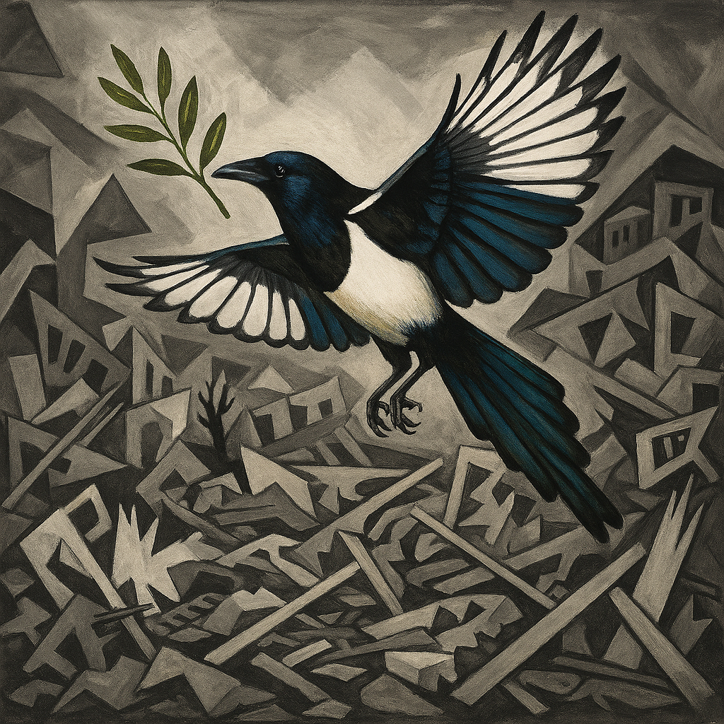E quelli che l’hanno vista da lontano hanno sentito qualcosa venir su da dentro. La gazza non era solo una gazza. Era una voce. Era una città. Era un popolo e non domandava mai pietà: domandava giustizia. Voleva che il cielo tornasse ad essere di tutti. Vuole che più nessuno sia costretto a vivere nel terrore. Che più nessuno debba imparare a distinguere il rumore di un missile da quello del vento. Che la terra torni ad essere casa e il cielo libertà.